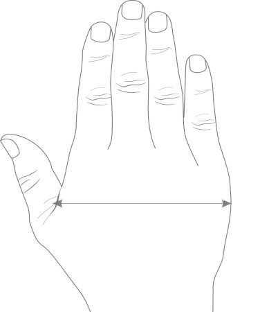 To determine the size of the mouse for the best fit, measure the palm as shown in the drawing.